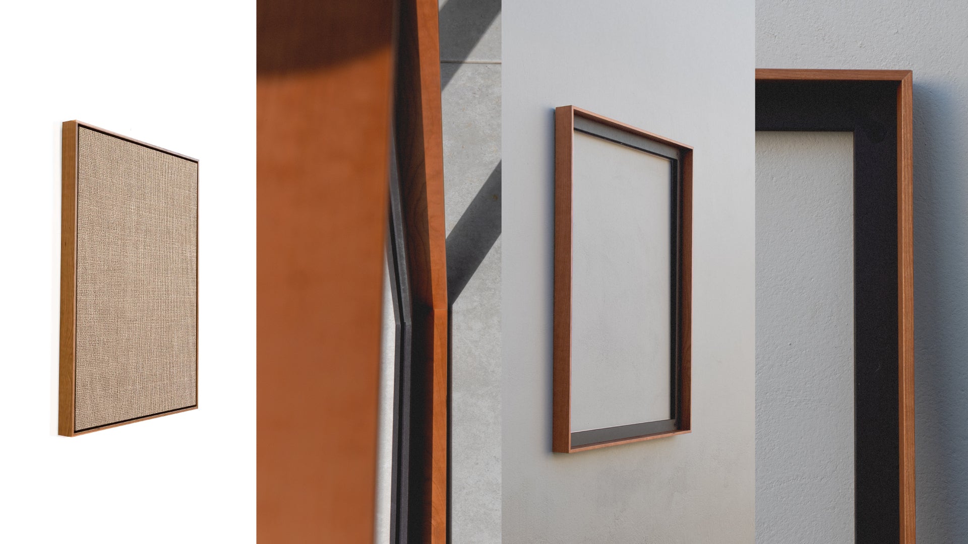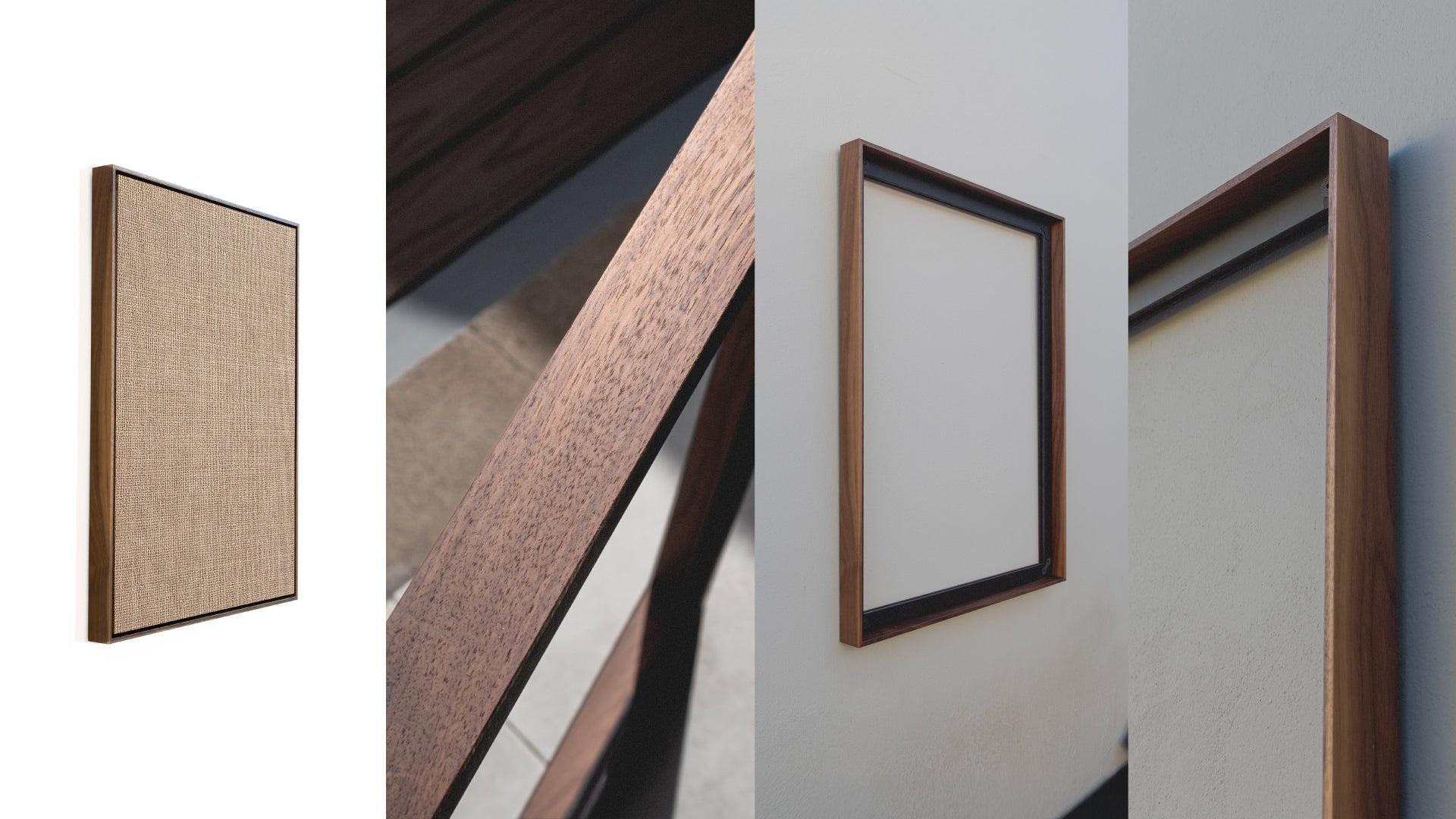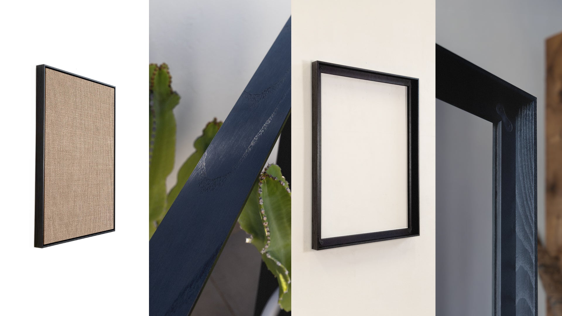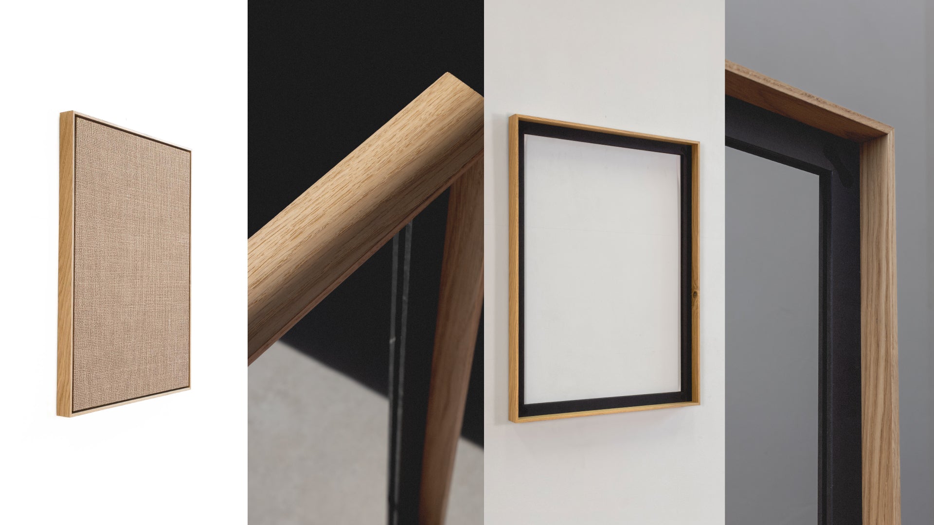 Alle Rahmen werden standardmäßig mit einer schwarzen MDF-Innenleiste gefertigt, die der Schattenfuge mehr Tiefe verleiht. Bei der weißen Esche wird die Innenleiste mit lackiert.